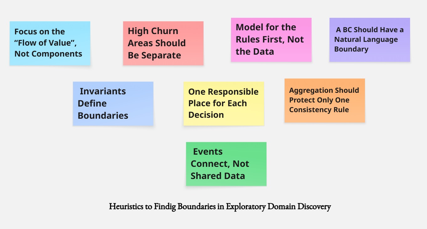 One of the most important heuristics says that invariants define boundaries. Invariants are the rules that absolutely must stay true, otherwise the business breaks. As soon as you identify one of these rules, you usually find the core of an Aggregate or even the core of an entire bounded context.