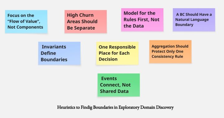 Design Time EDD comes with multiple heuristics. Below are the heuristics and concrete examples from the YummyFood food-ordering domain example used during Live Demo. Heuristic 1 – Invariants Define Boundaries Where a rule must always be true, you have a boundary. One of the most important heuristics says that invariants define boundaries. Invariants are the rules that … Continue reading EDD Heuristics for Design-Time
